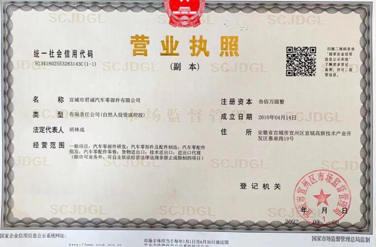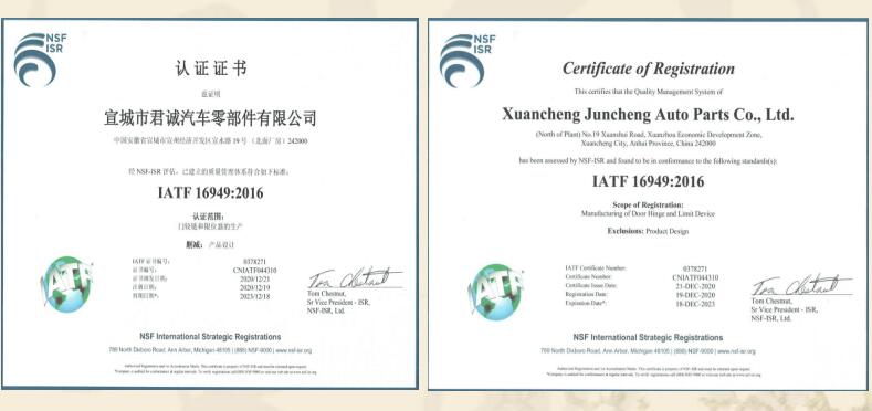 宣城市君誠(chéng)汽車零部件有限公司是專業(yè)生產(chǎn)各類汽車鉸鏈及限位器的民營(yíng)企業(yè),總投資3000余萬(wàn)元,位于宣城高新技術(shù)產(chǎn)業(yè)開(kāi)發(fā)區(qū),緊鄰宣廣、宣蕪高速公路,地理位置優(yōu)越,交通便捷。是“國(guó)家高新技術(shù)企業(yè)、知識(shí)產(chǎn)權(quán)貫標(biāo)企業(yè)、安徽省商標(biāo)示范企業(yè)、安徽省科技型企業(yè)”,已獲得國(guó)家發(fā)明專利18項(xiàng),實(shí)用新型發(fā)明專利4項(xiàng)。主要從事各類汽車門鉸鏈及限位器的設(shè)計(jì)、研發(fā)、生產(chǎn)、和銷售,具有專業(yè)的合作團(tuán)隊(duì)。自2015年正式生產(chǎn)至今,已形成一整套完整的生產(chǎn)、質(zhì)量管理體系。并已通過(guò)國(guó)家強(qiáng)制性產(chǎn)品認(rèn)證“3C”體系認(rèn)證及IATF16949國(guó)際質(zhì)量體系認(rèn)證。在生產(chǎn)設(shè)備上,公司擁... 【查看詳細(xì)】